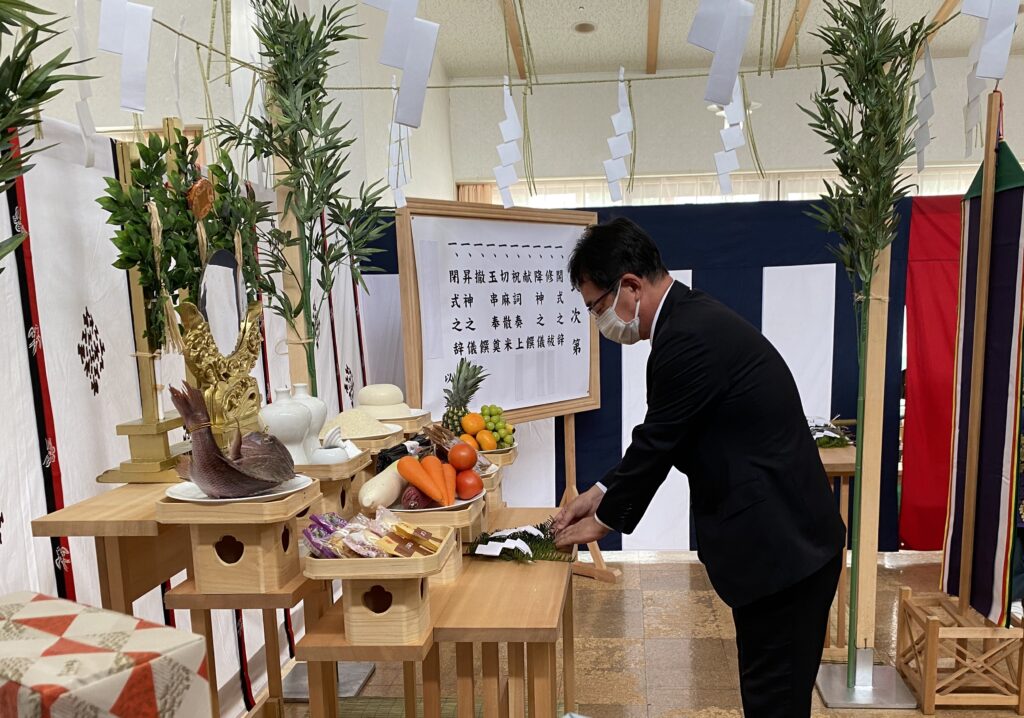 この度、9月29日(月)、三本町長にもご参列いただき、「やすらぎの家工事安全祈願祭」を執り行いました。大規模工事の安全と成功を職員、関係者一同で祈願することができました。いよいよスタートです。