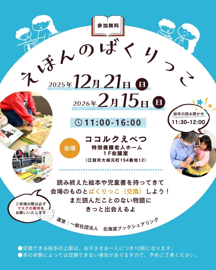 北海道ブックシェアリングさん運営、ココルクえべつの大人気イベント『えほんのばくりっこ』を